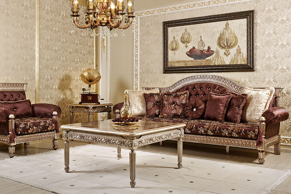 General Description: New Belinda Classic Sofa Set is an elegant classic sofa model that is carefully produced by Asortie Mobilya and combines natural wood and hand craftsmanship. This set, with quality and care in every detail, is produced in special color options and in desired sizes and offered to customers. This set, consisting of two sofas, two armchairs and a coffee table, can optionally be enriched with two side tables. This classic sofa set, which can be sent anywhere in the world with the assurance of Asortie, attracts attention with its aesthetics and durability. New Belinda luxury living room set model can be custom-made with the size and color options our customers want. New Belinda seating set is generally preferred together with the New Belinda Classic Dining Room Set, which is from its own group.